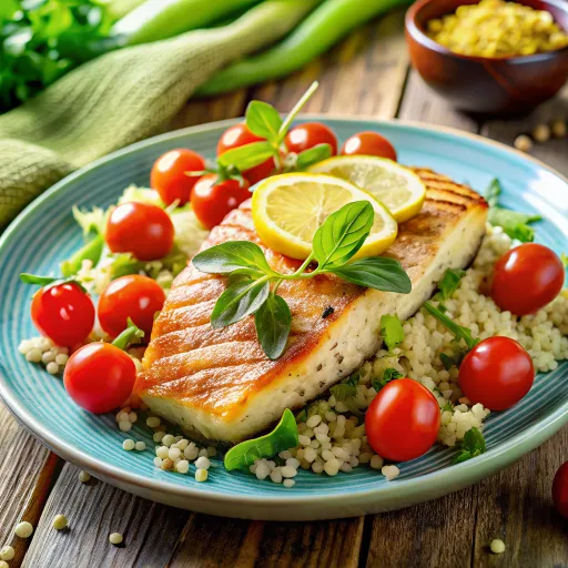 A vibrant medley of creamy avocado, nutty quinoa, and fresh vegetables, topped with zesty lime dressing for a refreshing bite.